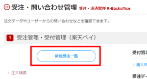①RMS内のトップの左のタブにある「受注・決済管理」をクリック