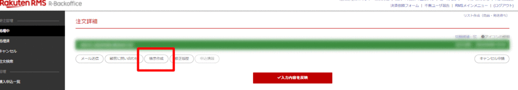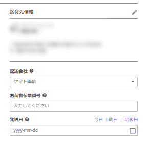 注文詳細画面の右側に上記のような入力画面がありますので、ここで、