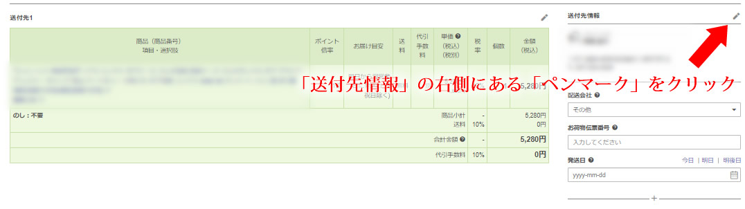 送り状のお届け先情報だけ変更して対応すると、楽天の管理画面を見ると変わっていないので、お客様が注文内容を確認した際に、「住所が変わっていない」と確認の連絡をしてくることが少なからずあります。