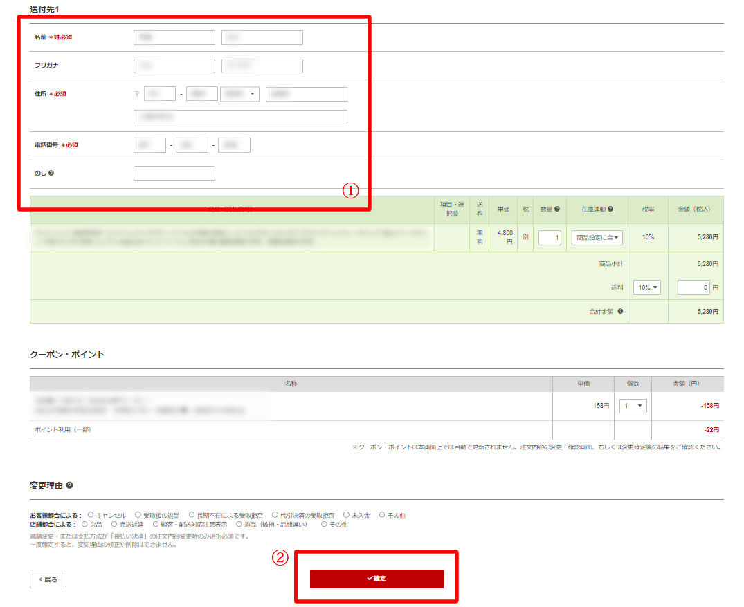 赤枠の部分の住所内容を変更して、確定ボタンを押して、RMS内の変更完了です。